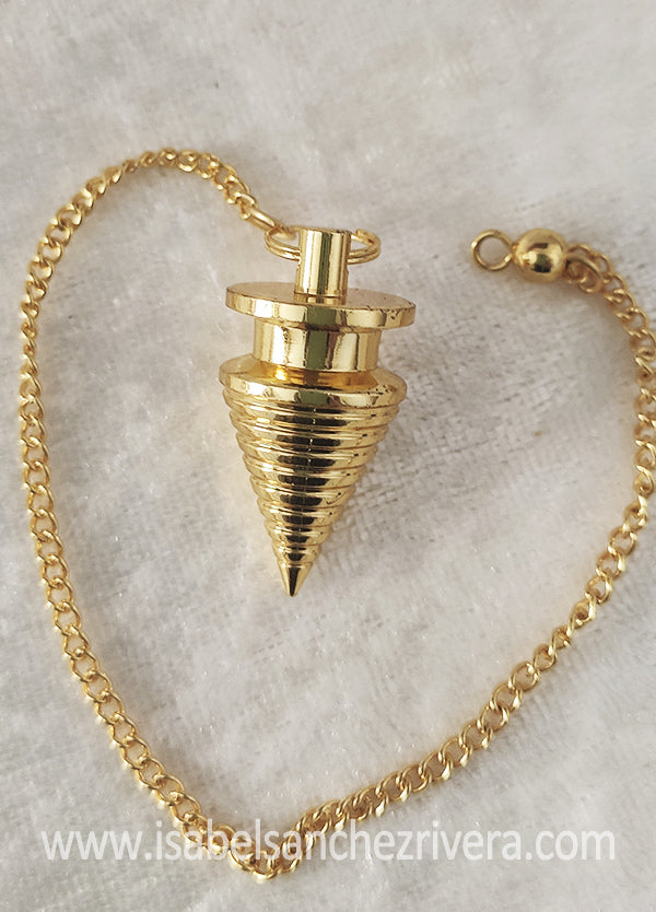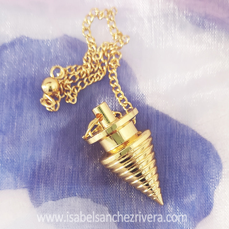 Péndulo de Metal cónico acanalado Dorado Sanación Dowsing A++