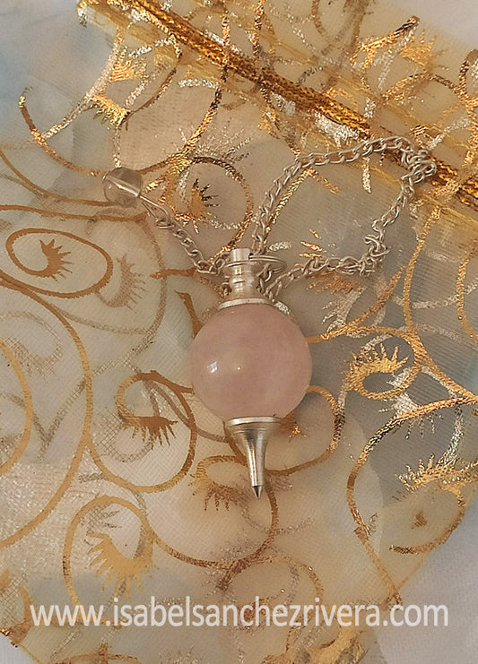 Péndulo Esférico de Cuarzo Rosa en piedra natural Dowsing A++